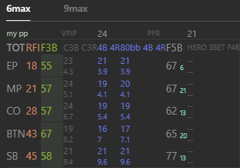 Но так же нужно смотреть и на постфлоп оппонента, есть прослойка регов, которые имеют фолд на 3бет 60% и фолд на сибет флопа тоже 60%. Или же у них фолд по флопу 35-40, а по тёрну в районе 60%. Все эти вещи нужно понимать и , главное, во время раздачи успеть это всё проанализировать.