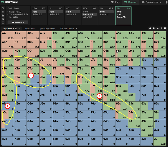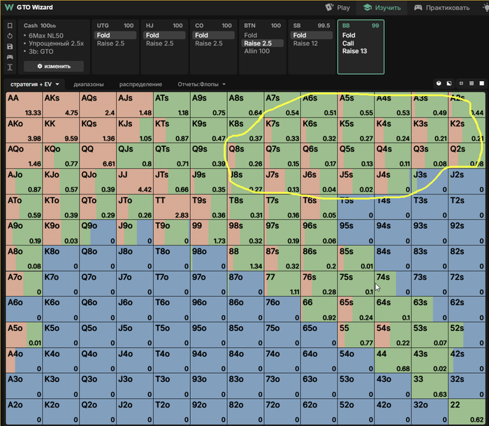 Т.е. не нужно брать руки из жопы и 3бетить их. Просто те руки, которые солвер 3бетит частотно - 3бетить более частотно😑
