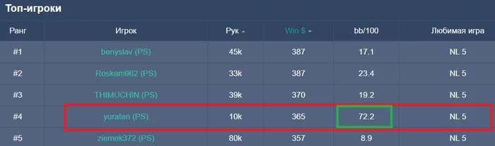 По приколы глянул топ винеров в этом году на лимите нл 5. У чувака 72ББ на 100. Выиграл 70 би за 10к рук. Играет 42 на 41, WoSD 72% Блин, я всё понимаю, но старзам вообще плевать? Очевидно ж, что человек каким-то образом жульничает.