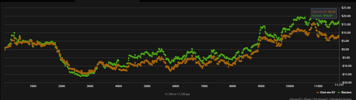 Сразу пошло очень хорошо, в моменте был в плюсе по игре на 18$+-, но потом конечно все стало хуже)