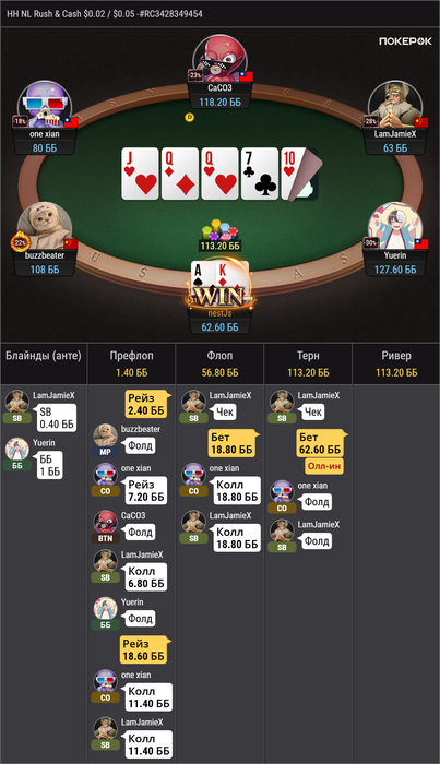 Сайзинг 4 бета смешной. На самом деле в 100бб на префлопе АК можно просто пушить тут. Мертвых денег достаточно.