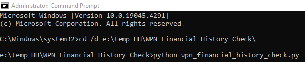 3) Переходим в папку, где создали файл скрипта wpn_financial_history_check.py (пустой текстовик, скопировать в него код, переименовать). xlsx файл от WPN с транзакциями тоже копируем в эту папку.
