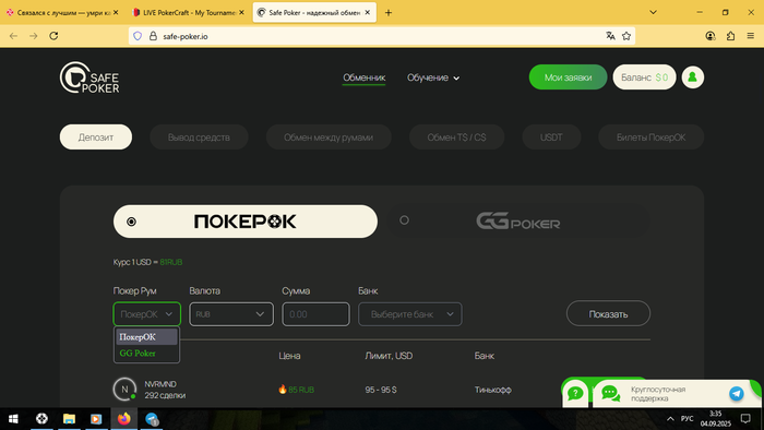 Хочу депнуть на PokerKing и начать там. Обычно делал это через обменник SafePoker. Но депозиты почему-то доступны только на Покерок. Это у меня что-то не в порядке или они теперь полностью на Покерке сосредоточились?