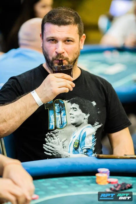 Артем Максименко выигрывает раздачу и выбивает Виталия из игры.