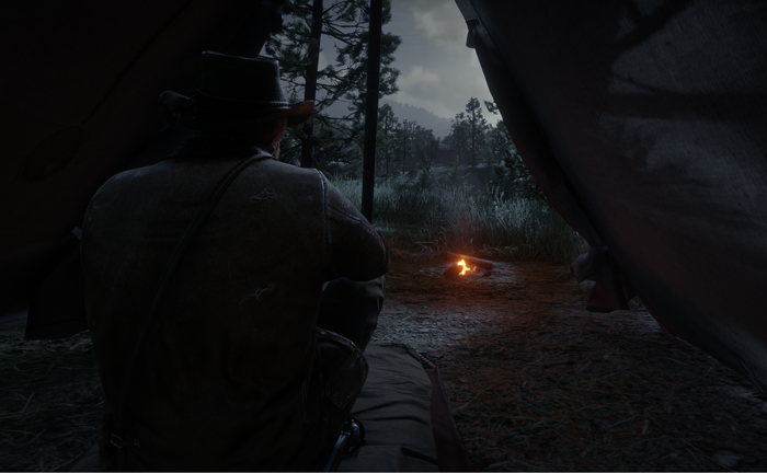 Сидишь в палатке, смотришь сквозь полог на костёр, а вокруг — только ночная тишина. Нет никакой спешки, ни единого раздражающего звука — только треск дров, мерцание огня и бескрайняя ночь вокруг. В такие моменты приходит настоящее спокойствие: ни одна другая игра не даёт такой атмосферы замедления и уюта. Можно просто сидеть, слушать ночные звуки, думать о чём-то своём или ни о чём, не гонясь за сюжетными галочками. Здесь по-настоящему живёшь в этом мире — по своим правилам, своим ритмом, не спеша никуда.