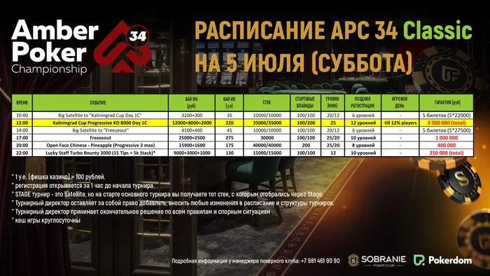 2) 12:00 Kaliningrad Cup Progressive KO 8.000 Day 1C.