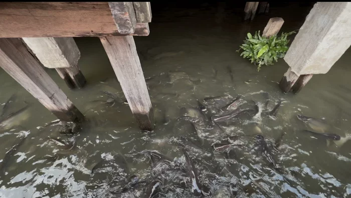 Была одна недолгая остановка у кафе, чтобы покидать куски хлеба огромной стае больших рыб