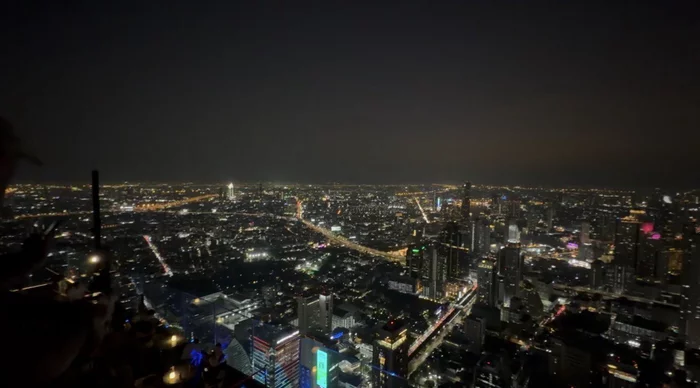 Приехав на место, я купил билет за 1800 бат. Лифт с огромной скоростью поднял меня с 1 до 74 этажа. На 74 и 75 этажах можно смотреть в окна с отличной панорамой на город