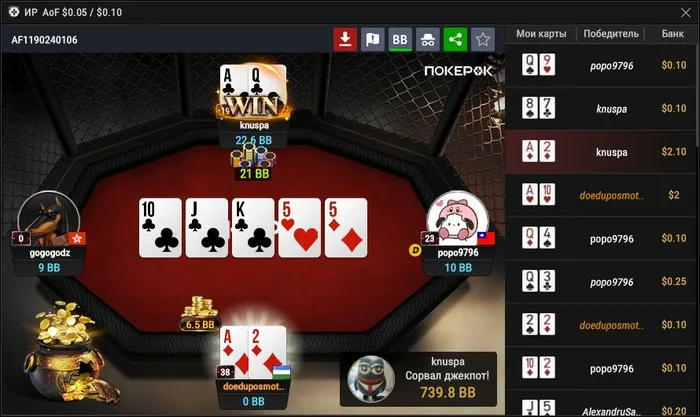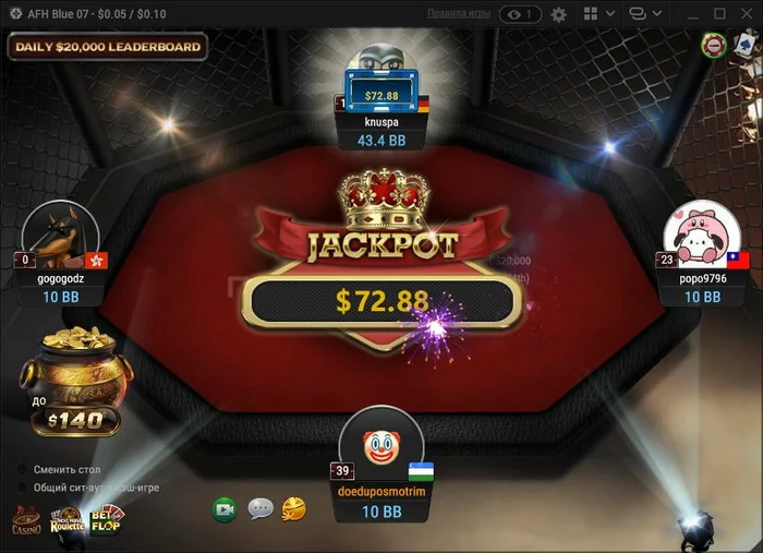 Кстати, столкнувшись с необходимостью быстро и без смс наколотить рейк – открыл пару столов AOF. Лудоманская хуйня, но я ничего лучше не придумал. Ну и ... помог занести джекпот человеку. Давайте порадуемся сейчас за него, ну а в следующий раз, помолимся ГСЧ и будем радоваться уже за меня.)