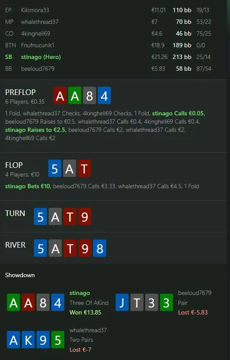 Я открыл 4 стола. На трех были разные игроки,но очень типичные, впип пфр 99/80, трибет 80, и они все сели слева от меня...