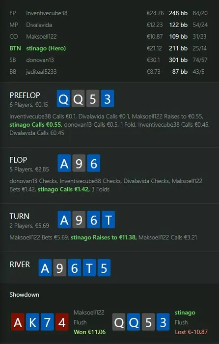 Смазал концовку раздачей, не смог выбросить префлоп, не смог выбросить флоп, и терн.. Ошибся..