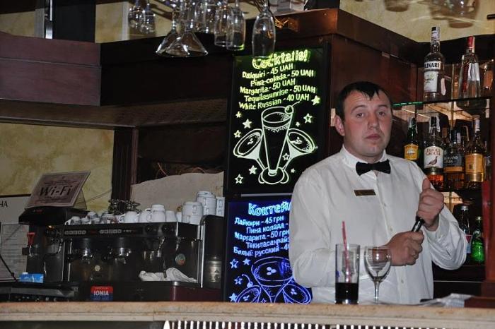 На фото - знаменитый бар киевской гостиницы "Русь", играя в котором "затаскиваются" миллионники в онлайне (ещё свеж в памяти пример Дмитрия Стельмака). Фартовый бармен ... и приятная компания регуляров бара, которая формируется из топовых "вылетевших" оффлайнеров.