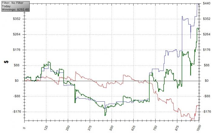 Что-то странное в последние дни. Обычно, на удивление, по утрам было довольно много игры (хотя америкосов не стало, зато, в отсутствие американских регов, расплодилось прилично канадских и южноамериканских фишей). На этой же неделе, игры по утрам почему-то очень мало. Вчера просидел с 9 до 16 и едва наиграл 500 рук. Сегодня с 9 до 15 поиграл чуть больше: около 900 рук. Никто не заметил ни каких изменений?
