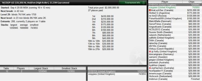 Poker Stars $10000+$300 No Limit Hold'em Tournament - t5000/t10000 Blinds + t1250 - 5 players -