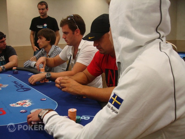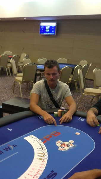 Первый день я начал играть довольно агрессивно и постепенно наращивал стек, в итоге закончив 1ый день с 80к. Все довольные тем,что никто не вылетел начали с того дня сидеть на диванах в холле и тащиить на Вовчика ноуте турниры на ПС. И почти каждый день у нас была финалка))). Репортеры с местного Балкановского Покер ньюс проходя мимо нас поражались тому, что мы играли целыми днями в покер а заканчивали это еще каткой в интернете. В один прекрасный вечер один из репортеров даже предложил нам бесплатный палтинник от poker news