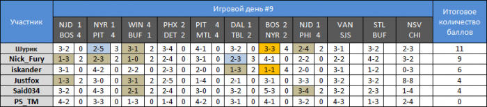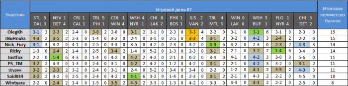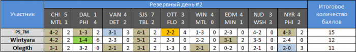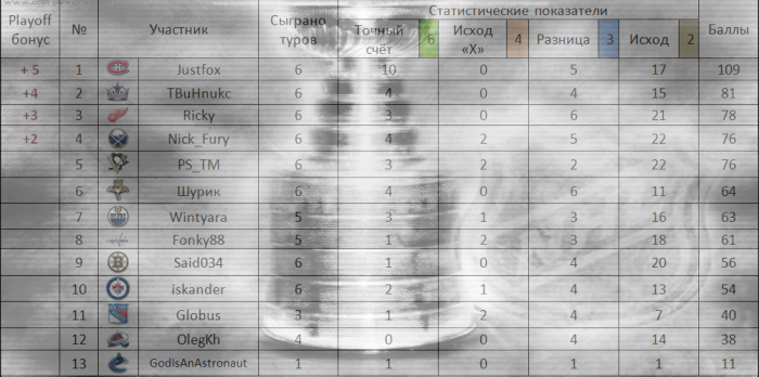 если в резервном туре оттава и флорида сыграли 3-3, а у меня на этот матч был поргноз 2-2, то почему я не получаю ни одного балла за этот прогноз?вроде как должен получиьт 4 и набрать 13 очков. ВАШ-НДЖ 3-3 (0 очков). НЮР-ФИ 4-2 (2 очка). Итого за резервный тур 15 очков.