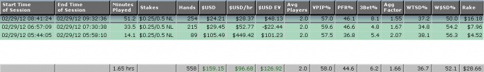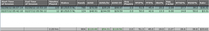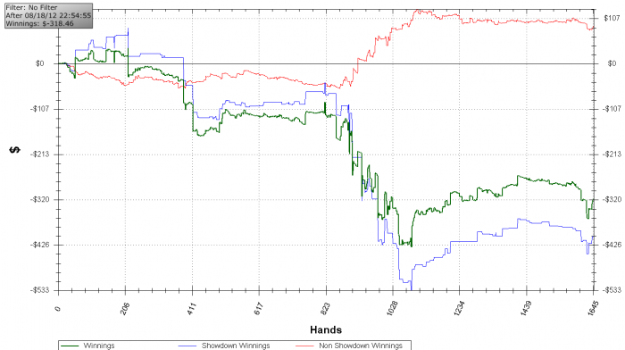 Играл нормально, просто на период забива пришёлся и мини-даунстрик. Несколько раздач из одной из последних сессий с двумя фишами (были и интересные, но лень искать):