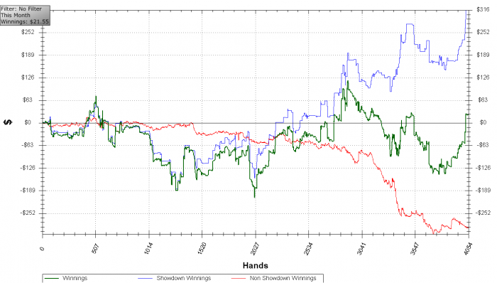 Лень меня побеждает. Войти в рабочий ритм трудно, а вот выйти из него очень легко, особенно когда деньги особо и не нужны. Тусовался с друзьями, занимался разной ерундой. В мае ещё и отдохнуть съезжу на 2 недели. Плюс перестал играть в двух румах (в одном рб порезали, другой проблемный, вывел оттуда всё), но сейчас создал 1 новый акк и ещё сегодня-завтра 1 создам, буду потиху входить в режим. Т. к. на покер забил, то забил, естественно, и на дневник. Играл с марта только на PS, в среднем меньше 1 часа в день: