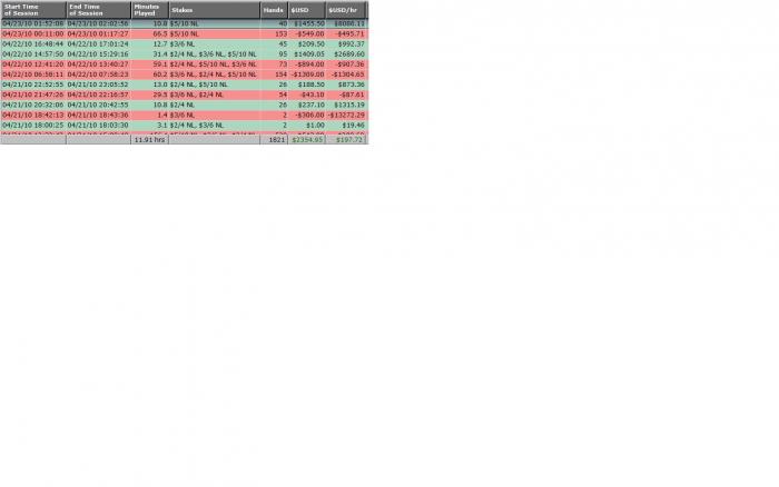 Марафон приближается к концу и похоже, что мне не удастся выполнить свою задачу. Результат выложу в самом конце. Вообще у меня давно не было такого плохого месяца, я конечно выигрываю, но очень мало. В последнее время я задумался, а нужен ли мне этот ВСОП? Скоро я перейду на 10-20 и гораздо важнее закрепиться там, чем поехать на всоп и засадить там несколько десятков тысяч долларов. К тому же эта поездка откинет меня назад в плане скила. Из-за таких мыслей как-то пропала мотивация и я опять стал играть мало, еще отвлекся на турниры. Играл три скупа, все три раза вылетел когда до призов оставалось меньше 100 человек. У меня всегда был хороший стэк к баблу, но раздавали несколько кулеров подряд и я вылетал. В последнем турнире было так: У меня два средних стэка и началось с проиграл (парень поставил префлоп аллин с СБ 10м), потом с проиграл . Остается 10м, под мой рейз заходит парень с , у меня . Флоп выставились на флопе и я вылетел. Вообще я понял насколько слабые турнирные игроки, они абсолютно не умеют играть с большими стэками, допускают кучу больших ошибок, даже так называемые "топ онлайна". Исходя из этого поездка на всоп становится более плюсовой, если там структура нормальная. Сегодня сделал депозит в абсолют покер и увидел Брендона Канту, сидевшего за хедсап столом 5-10. До этого я обыгрывал всех покерстарс или фуллтильт про, все они играли слабо. К тому же они точно не хитандранят. Вообщем Канту тоже оказался слабым, но он выкатал весь мой депозит. У меня сложилось впечатление, что он видит мои карты. Мой 3бет был больше 30%, он падал где-то в 65%. Потом я переключился и стал 3бетить только по карте, благо карты мне заходили хорошо и тут он стал выкидывать все подряд, хотя мой 3бет держался больше 30%, я все ждал что вот-вот он попытается меня переиграть и продолжал 3бетить только по карте, так он выкинул раз 15 подряд, я решил снова перестроиться и стал 3бетить с мусором и тут началось. Каждый раз когда я 3бетил с мусором он сопротивлялся (мне бы такую чуйку). И кроме этого, как только я получал хорошую руку с которой можно играть на стэк у него обязательно была рука сильнее. Сейчас сделаю кешаут с одного из румов и пойду делать депозит на абсолют покер. Буду его вылавливать.