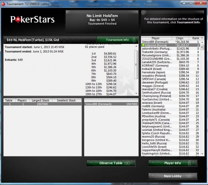 впечатления: 1) по умолчанию у меня аватарка петуха была, wtf?:D 2) софт убог, просто ужас) 3) народ в турнире за 30 играет как на фантики)