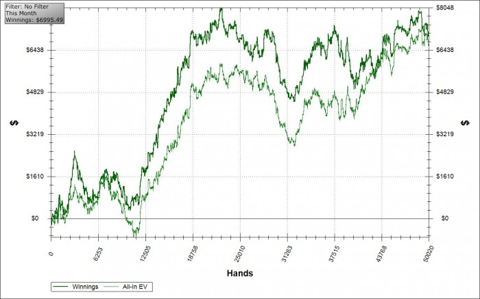 А то что проведу месяц до конца на 200 может помочь мне обрести полную уверенность в своих силах, так как если я пойду выше и меня начнет справедливо нагибать я могу ударится в депрессию, забухать и прочее говно, что не позволит и вшивые 200к рук накатать. А так бабла норм уже занесено и навряд ли может случится что-то ужасное на 200, ну не залью же я все 70би за последующие 100к рук(ой, зря все это пишу, история знавала таких балаболов, которые на следующий день все и заливали, но я человек адекватный, то есть не суеверный, так что пох)