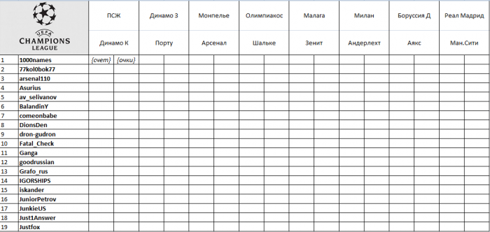 Поздравляю любителей футбола с началом ЛЧ, а участников традиционного форумного конкурса с его стартом.