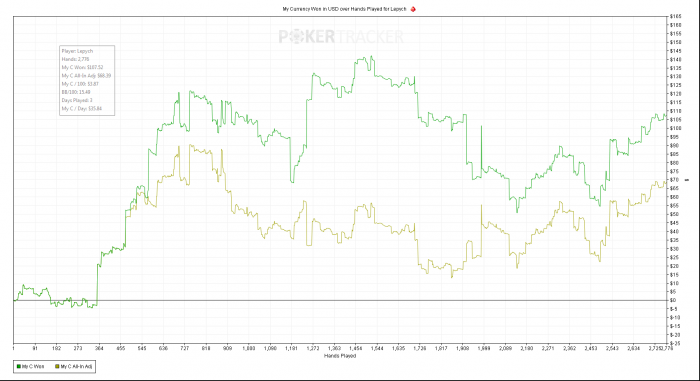 Добил банкролл до 1000$ , по плану двигаюсь на полтинник, с микро лимитами надеюсь закончил, двигаясь с агрессивным брм. Потребовалось больше месяца, но за это время было наиграно всего 35к раздач, что смешно. Хз чем это объясняется, но катать просто тупо не особо хочется, наверное связано со скучной игрой на микролимитах, где бьешь себя по рукам чтобы лишний раз что-то не изобразить, а местным регам и заплывшим на это явно по барабану, вот и выходит что сидишь и скучно катаешь по карте. Надо вернуться на сотку, там вроде поинтереснее с этим.