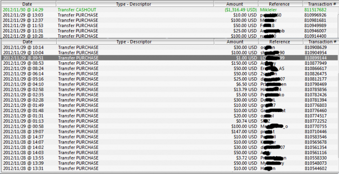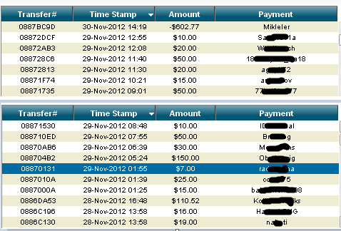 Все эти деньги плюс то что было на аккаунтах отправили Мише. Вот все переводы на его аккаунты: