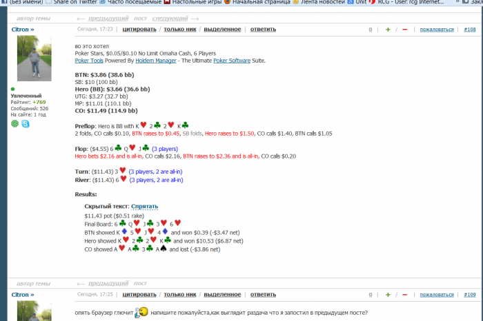 Citron @ 14.1.2013 давненько в пло не играл,вот сегодня поигрываю,и пока удачно.Ваши мысли по счастливым раздачам?