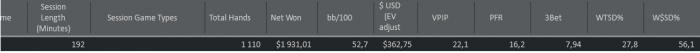BTN: $428.46 (107.1 bb)SB: $207.20 (51.8 bb)