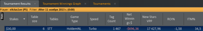 5) В случае просадки банкролла на 2000$ игрок спускается на лимит ниже(15$) и играет там до увеличения банкролла до 2000$. После чего вновь играет 30$. В случае очередной просадки цикл повторяется и так далее.