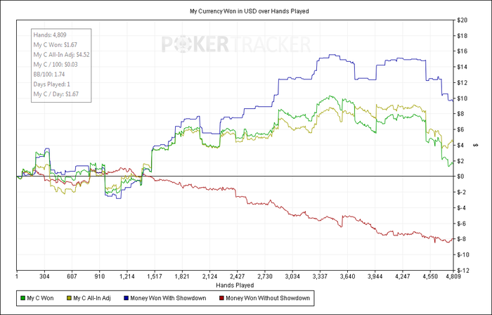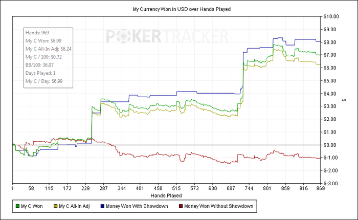 В конце сессии после раздачи, где я знал что проиграл но сделал хуйснимкол, начал сильно тильтовать и как следствие тут же закрыл столы, продолжу потом, или завтра уже хз посмотрим.