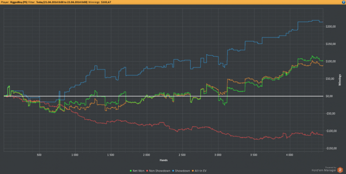 Вчера я отправлял базу своих рук приятелю который сам играет нл 100, его заключение было для меня очевидным - часто переигрываю свои руки.