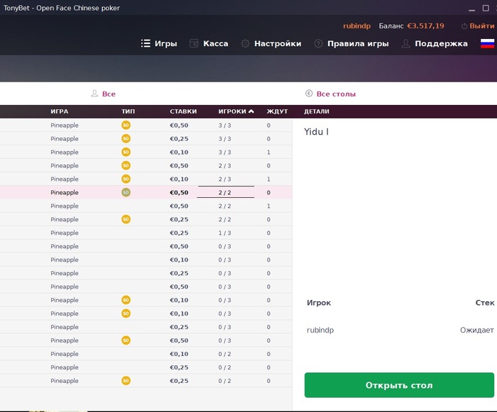 И еще этот баг что показывает , что за моим столом 2 человека. Всмысле 2? Как 2 , если я один? А если люди нажимают опцию , "спрятать полные столы" , он меня никогда в жизни так не найдет. И как выйти из этой ситуации? На скриншоте четко видно суть проблемы! И в правом нижнем углу видно , что за столом я один. "rubindp - ожидает "