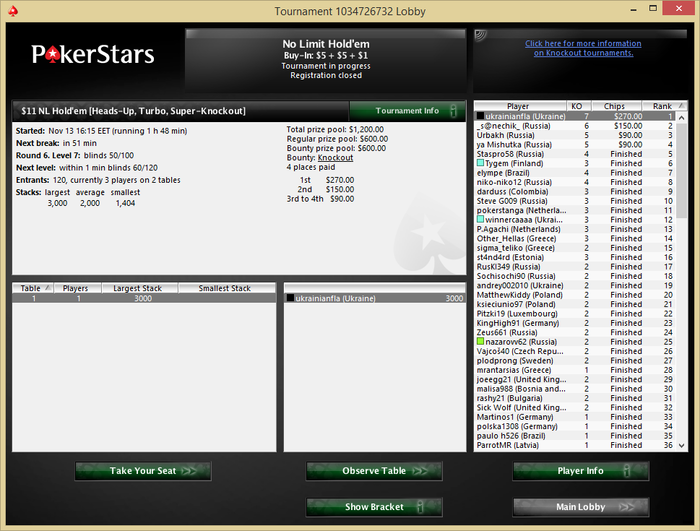 ukrainianfla, это не викли, это дуэль) Я бы с радостью поучаствовал в твоем заманчивом предложении, но это до утра при хорошем раскладе, а завтра соревнования по футболу в 5 вечера, не хочется быть обмякшим, после того как проснусь в 3. А при плохом раскладе - это деньги на ветер) А тебе удачи, если кто согласится, послежу за вами, пока не вырублюсь)