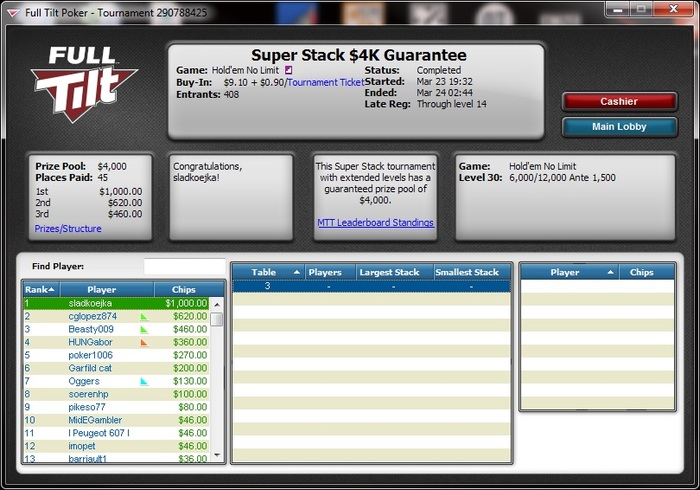 в первой же сессии после перерыва, в самом дешевом по призовым турнире загрузки в год моде снял шестерых с финалки