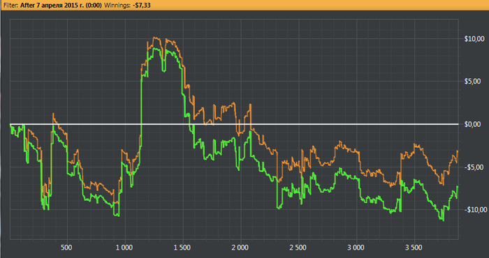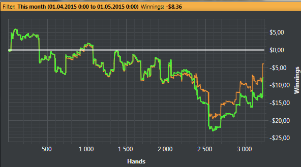 Недобор еще немного увеличился, но ничего криминального не было, просто ни одной монетки на префлопе не выиграно.
