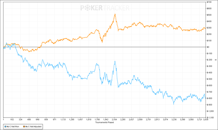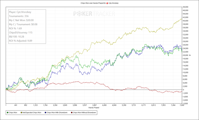 Какие варианты есть? я знаю, что я играю хорошо, 20к турниров на лаке не вытащить, и сомнений по поводу своей игры у меня не было в тот момент. Ты пишешь про мазохизм, как-будто из-за такого стрика нужно забивать на покер тут же. Нет, нужно сидеть и терпеть, а что делать. Да, задница горит когда две недели подряд кормят г*вном каждый день,, но ты сидишь и не ноешь, потому что у тебя две опции 1)просто играть дальше, 2) забить на покер вообще из-за паршивого стрика, коих будет еще миллион
