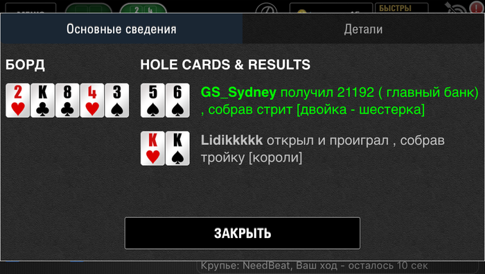 Вчерашняя игра начиналась размеренно и хорошо шла, пока в мини кикофе не посадили ко мне за стол Виртуоза и он не пожелал мне удачи, на самом деле это не причём, просто прям стало кулерить оч жестко везде и всюду.. В 4 бет потах стали твориться чудеса, типо таких..