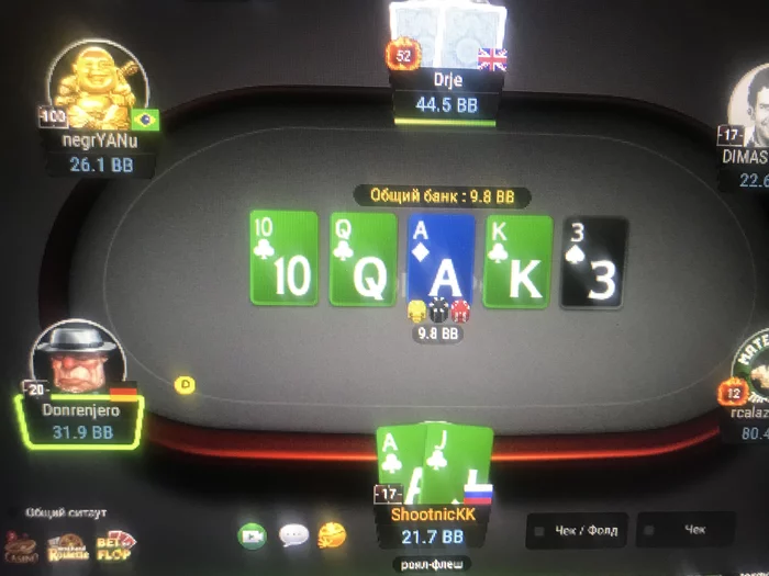 Правда потом раскрутился с 0.8бб. Но не дотянул.