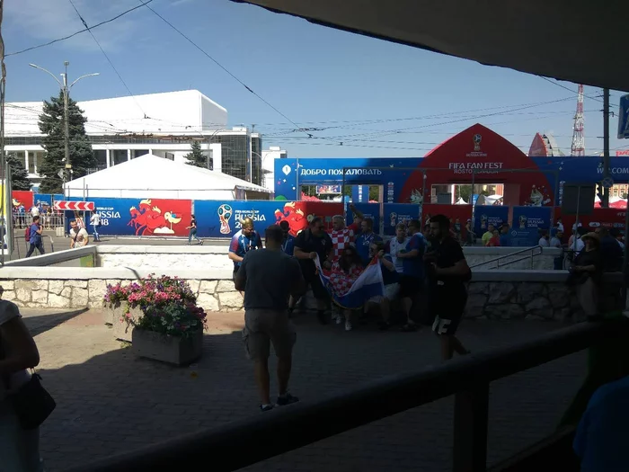 Здесь я сидел полсуток, жрал пиво и смотрел за движухой. В итоге то хорваты угощали, то я их. Потом исландцы подтянулись, мекс с компанией, которые не купили билеты до екб и остались, вручил шарфик с яйцами. За ментами также было интересно смотреть, какая-то местная гопота просочилась в фанзону и пыталась нажиться на бухих туристах, но наши доблестные четко выявляли такие элементы, и под ручку тихо выводили до выхода. На второй день был матч, или на первый, уже не помню..но было круто. Да и сам матч выдался интересным