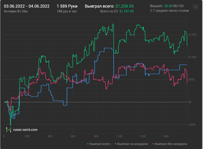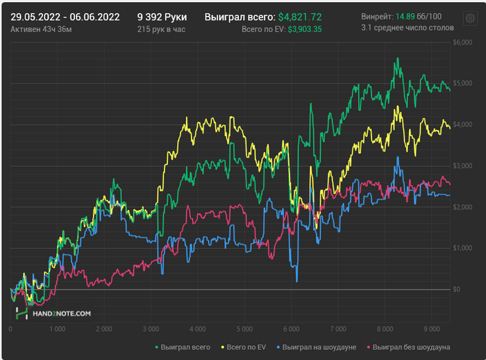 Рук отыграно по минимальному плану в 10к рук в неделю. Но тут обьективно свалились проблемы со здоровьем (скачет температура), сегодня вообще сиграл 400 рук.