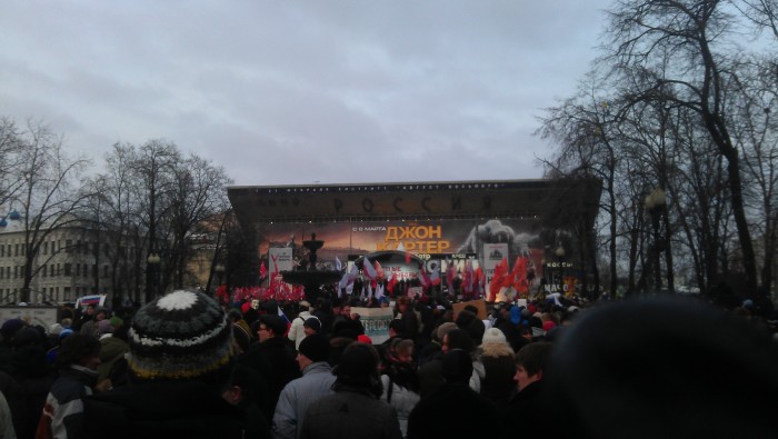 Всем Привет! К сожалению, очень мало свободного времени, чтобы что-то писать в блоге. Поэтому отпишусь коротенько обо всем. * Из игровых новостей ничего интресного, играем сейчас мало. * Сейчас готовимся к поездке на ЕРТ Кампионе, но сначала хотим уехать покататься на лыжах в Италии, а потом на авто уже перебраться в Кампионе и там отыграть серию. Вообще постараюсь написать позже более развернутый пост о оффлайн выездах на покерные серии, которые я в большей части расцениваю как покерный туризм. * Накопилось много непокерных или околопокерных дел, которые отнимают много времени и не дают сосредоточиться на игре. Про них писать не буду, не интересно. * Также планирую поездку в Грузию. Очень много в последнее время изучал информации из разных истоничков о реформах, проведенных в этой стране. Хочется съездить и самому увидеть результаты и новые системы в действии. К тому же кроме любопытства есть и определенные материальные интересы. * Вчера был на митинге на Пушкинской. Пару фоток: