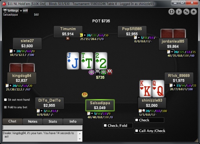 Poker Stars, $20 Buy-in (20/40 blinds) No Limit Hold'em Tournament, 6 Players