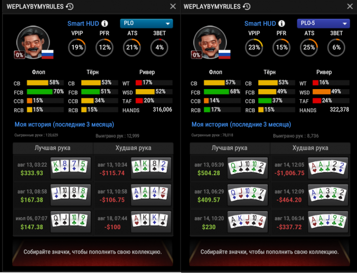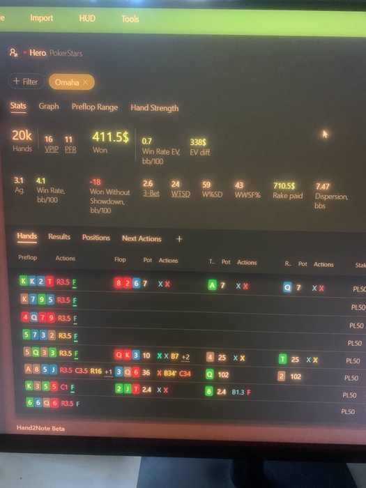 Привет. Интересует полный бэкинг на омаху 5 и 4. Стабильно играл 0.25/50 и иногда запускал 0.5/1 под рыбу. Прикрепляю данные
