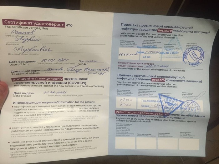 У ряда знакомых последствия второй прививки были хуже, чем от первой. Но у нас все прошло вообще без проблем, температура росла всего на градус и рука чувствовала себя гораздо комфортнее. На второй и третий день ничего не изменилось. Из странного: Лане сразу пришла смс с ссылкой на QR-код, мне ничего не пришло(( Из забавного: диалоги со знакомыми на тему вакцинации. Сразу поясню, я отношусь спокойно к любому решению, мой лучший друг категорически не прививается, но они с мамой, супругой и ребенком реально заморачиваются на маски, руки с мылом, антисептики, даже товары, привезенные курьерами, обрабатываются кварцевой лампой. Проще говоря, имеют реальный шанс избежать заражения
