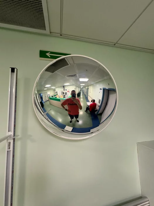 Хирургия. Сразу понятно, что это она. Люди в чулках, с пластырями, ковыляющие в сторону перевязочной. В коридорах установлены большие автомобильные зеркала.