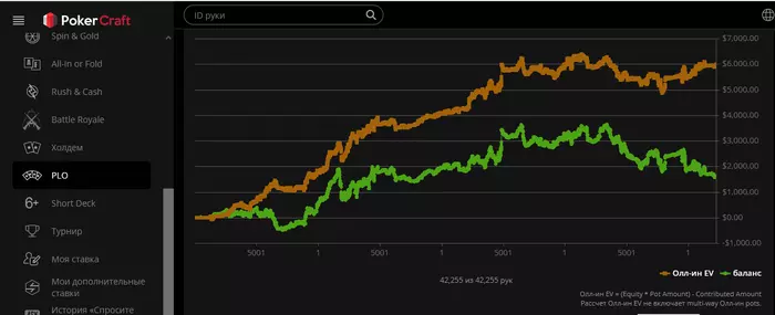 Кормдлярыб, 42к слишком маленькая дистанция что бы делать выводы. По поводу графика, можешь скачать хендтуноте4, она бесплатная и можно грузить руки без конвектора. А на твой первый ответа никто не знает. У меня бывали и хорошие и плохие раны по 50-100к. У меня за последние 400к рук эти линиии не сходятся.