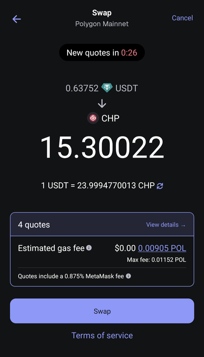 саппорт ответил что сейчас chp поменять на usdt нельзя нигде (в метамаксе тоже я попробывал)