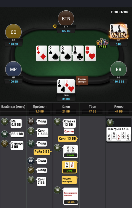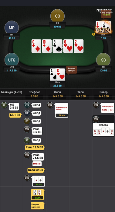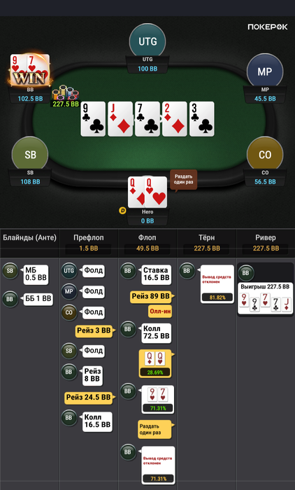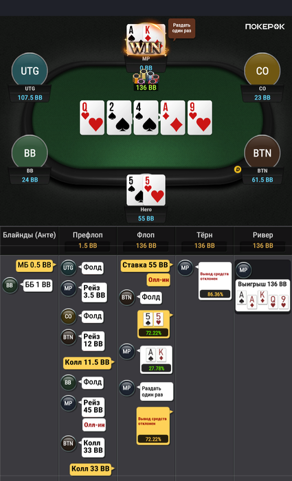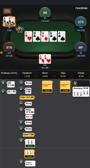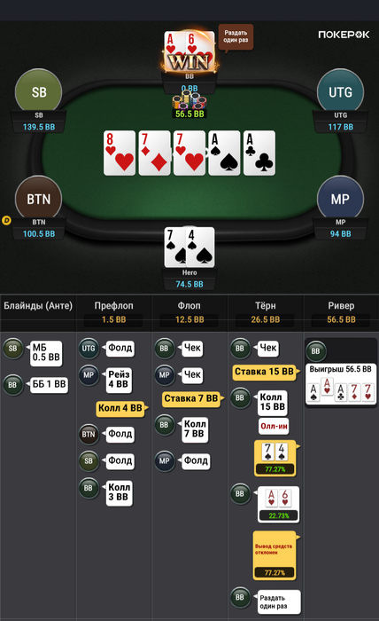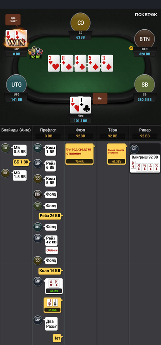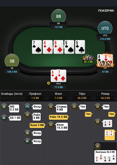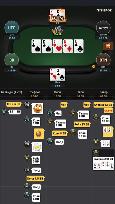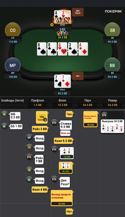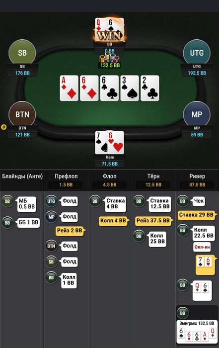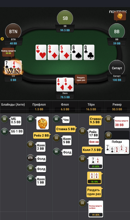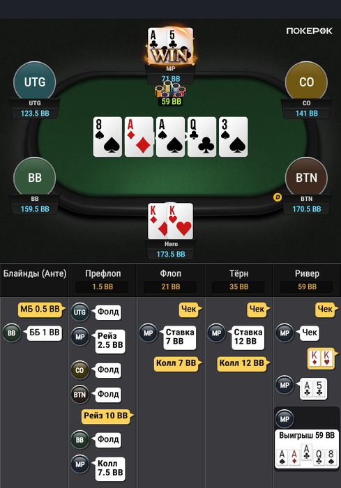 Зато в последней руке, которая должна была уйти в фолд ты выиграл.
